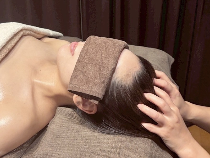 水やオイルを使わずに頭皮や首、肩周りを揉みほぐす施術です。頭のツボを刺激することで血行を促進し、眼精疲労や首・肩のこり、ストレスの軽減に効果的です。リラックス効果も高まります。
